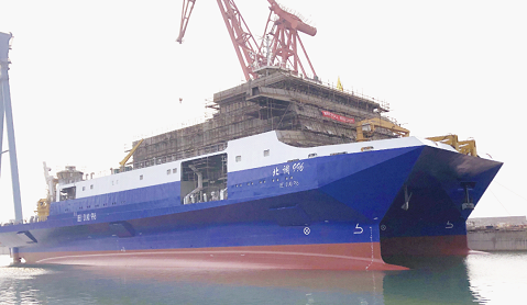 320日上午,在船東、船廠、設計院、船級社、監理單位及主要設備供應商的見證下,國內完全自主研制的深海裝備綜合試驗船順利出塢靠泊。