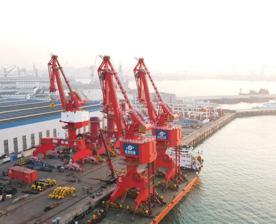 在青島海西重機碼頭,公司銷往河北省首鋼京唐公司的2MQ40t-37m雙四連桿多用途門座起重機順利發(fā)運。從運輸船靠泊到發(fā)運,以黨員為主的項目組精心組織策劃,提前備好物資,緊鑼密鼓、有條不紊地開展撐桿焊接、滾裝、海綁等工作,僅用一天半就完成發(fā)運任務。
