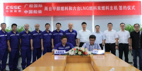 7月27日,中國(guó)船舶集團(tuán)旗下中國(guó)動(dòng)力子公司中國(guó)船柴與中國(guó)船舶集團(tuán)所屬?gòu)V船國(guó)際,在中國(guó)船柴本部舉行兩臺(tái)甲醇燃料主機(jī)和六臺(tái)液化天然氣燃料主機(jī)合作協(xié)議簽約儀式。廣船國(guó)際董事長(zhǎng)陳忠前、總工程師周木順,中國(guó)船柴董事長(zhǎng)付向昭、副總經(jīng)理?xiàng)钚?qiáng)、總工程師張光偉及雙方公司相關(guān)部門負(fù)責(zé)人出席儀式。