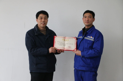 2月9日,宜昌市西陵區工會常務副主席王道慶一行到宜柴公司為張彥寧頒發獎狀,鼓勵張彥寧再接再厲,不斷學習新知識,掌握新技術,創造新業績,充分發揮示范引領作用,為企業技能水平提升和高質量發展貢獻力量。