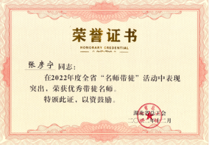 2017年以來,張彥寧先后榮獲宜昌市西陵區勞動模范、宜昌市“勞動模范”、宜昌市“好師傅”、湖北省“優秀帶徒名師”等榮譽,以實際行動躬身踐行“傳幫帶”,共計帶徒20余人,促進了年輕職工在各自崗位上業務能力和工作經驗的快速提升。