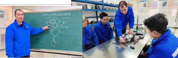 “一枝獨秀不是春,百花齊放春滿園。”作為公司柴油機裝配領域的帶頭人,劉曉剛始終堅持:看我做,跟我學,要求他人做到的,自己先做到。每每有新產品上線,劉曉剛都會熟悉研究產品知識與工藝,并結合日常裝配要點與疑難點,做成幻燈片,對裝配線上的職工進行培訓。同時,劉曉剛組織開設以“筑牢基礎再提升”為主題的技能基礎班、以“技師大講堂”為主題的技能提升班,先后編寫《柴油機裝試過程的清潔度控制》《TBD234柴油機故障分析與案例》等培訓教材20多份,年培訓課時30余個,培訓人數400余人次。近年來,劉曉剛作為師傅,成功帶出8名高級技工、4名技師、2名高級技師、3名勞模,為公司培養了大批高素質、高技能人才。