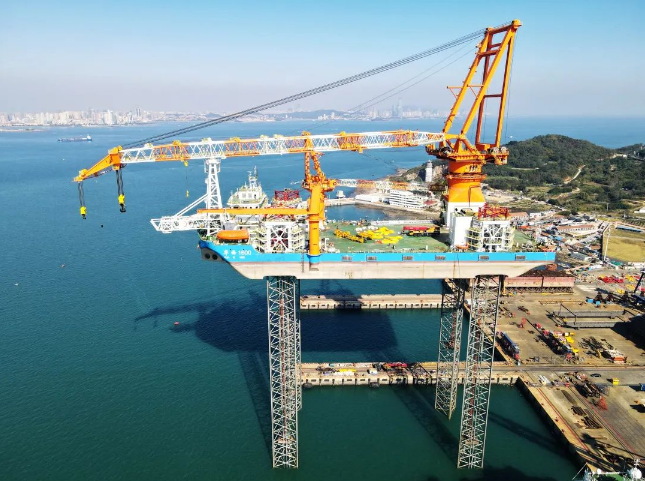 11月16日,中國船舶武漢船機總包建造的我國最新一代自升式海上風電安裝平臺——“華西1600” 1600噸自升式海上風電安裝平臺在青島成功交付。