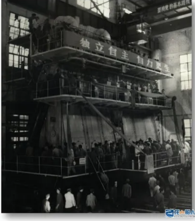 1958年9月28日,大連造船廠柴油機車間(大連船柴前身)試制成功我國第一臺6ESD106重型船用低速柴油機。