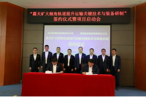 武漢船機與國能準能集團簽訂“露天礦大傾角軌道提升運輸關鍵技術與裝備研制”合同