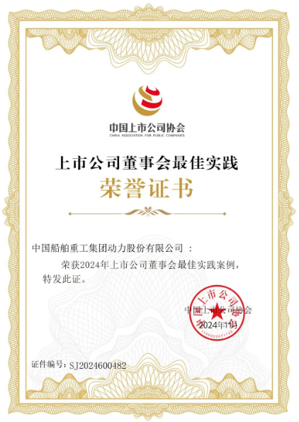 中國動(dòng)力獲評(píng)2024上市公司董事會(huì)最佳實(shí)踐案例獎(jiǎng)項(xiàng)。