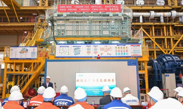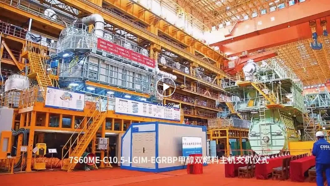 3月19日, 7S60ME-C10.5-LGIM-EGRBP甲醇雙燃料主機交機儀式在中船集團旗下中國動力子公司中船發(fā)動機大柴公司成功舉行。招商輪船總輪機長吳建移,中船發(fā)動機黨委委員、總工程師張光偉,大柴公司黨委書記、執(zhí)行董事李萬勝,黨委副書記、總經(jīng)理高波,船東船廠船檢代表等出席儀式,共同見證這一綠色船舶動力領(lǐng)域的重要時刻。