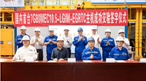 7月4日,國內首臺7G80MEC-LGIM-EGRTC甲醇雙燃料船用低速機交機儀式在中船集團旗下中國動力子公司中船發動機大柴公司成功舉行。該主機將安裝在大連船舶重工集團有限公司為招商輪船所屬海宏輪船(香港)有限公司建造的全球首艘甲醇雙燃料動力智能VLCC(30.6萬噸超大型油輪)上。海宏香港副總經理李偉平、大連造船副總經理何旭、中國船級社大連分社副總經理劉鐵波,大柴公司黨委書記、執行董事李萬勝等出席交機儀式。