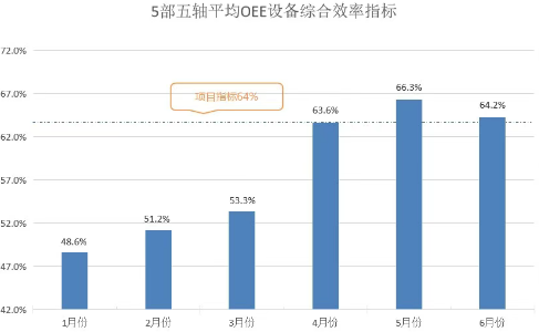 經過改善課題小組6個月的專項攻關,五軸加工中心OEE提升實現三級跨越。核心指標突破,OEE由48%提升至64%,年度釋放產能價值約320萬;過程浪費銳減,非增值時間占比從52%降至36%;組織動能迸發,員工提交改善提案20項,采納19項,員工改善熱情提升;工作機制初步建立,未來可在其他加工生產設備上推廣應用,推動加工效率的長效躍升。