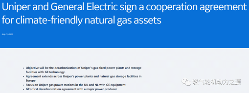 根據(jù)協(xié)議,通用電氣天然氣電力公司和Uniper將成立一個聯(lián)合工作組,探索、評估和開發(fā)Uniper公司旗下裝機容量達4 GW的GE燃氣輪機機組的脫碳技術(shù)和服務(wù)選項。然后,該工作組將在2021年初推出一份路線圖,“對推動脫碳所需的潛在升級和(研發(fā))計劃進行評估”。
