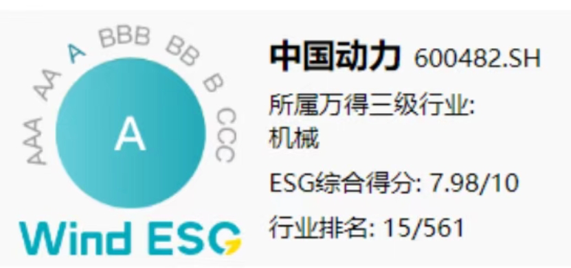 近日,知名權威ESG評級機構萬得(Wind)更新了中船集團旗下中國動力最新一期的ESG評級結果,中國動力憑借在ESG領域的實踐和成效,榮獲“A”級評級,綜合得分在機械行業561家上市公司中位居第15位。
